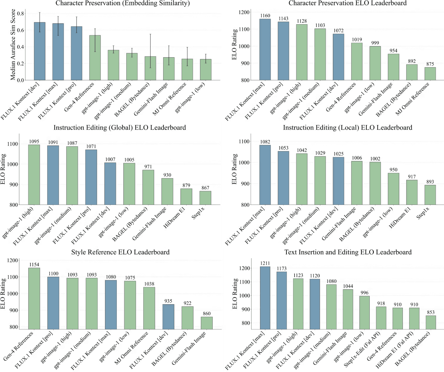 At Black Forest Labs, we remain committed to providing researchers and developers with best-in-class open tools that are competitive with existing proprietary solutions. To validate the performance of FLUX.1 Kontext [dev], we conducted extensive evaluation across multiple image editing benchmarks.